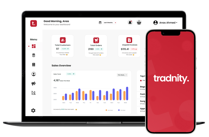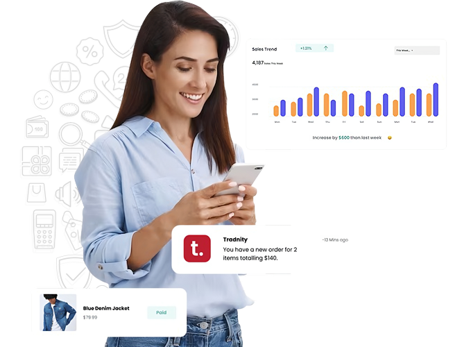 With Tradnity mobile app, you get all the features of a fully working admin panel allowing you to sell your product anywhere on the go!